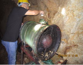 該礦采用抽出式機械通風系統,礦山在XJ390回風斜井口安裝一臺礦用節能風機,并設有反風裝置,能進行反風。通風設施較為完善,布局合理。礦山供風量能滿足礦山生產需要,有毒有害氣體濃度未超過《規程》規定。礦山制定有通風管理制度,建立有測風測氣檔案資料。礦山的通風設施、通風能力、通風效果與質量、反風設施、通風管理符合規定要求。